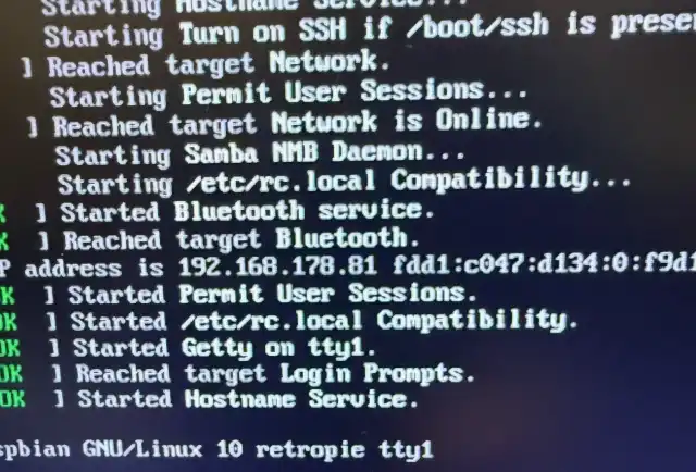 When the RetroPie boots up, check the screen to find the IP address assigned to your Pi by your router (you'll need it to connect via SSH).